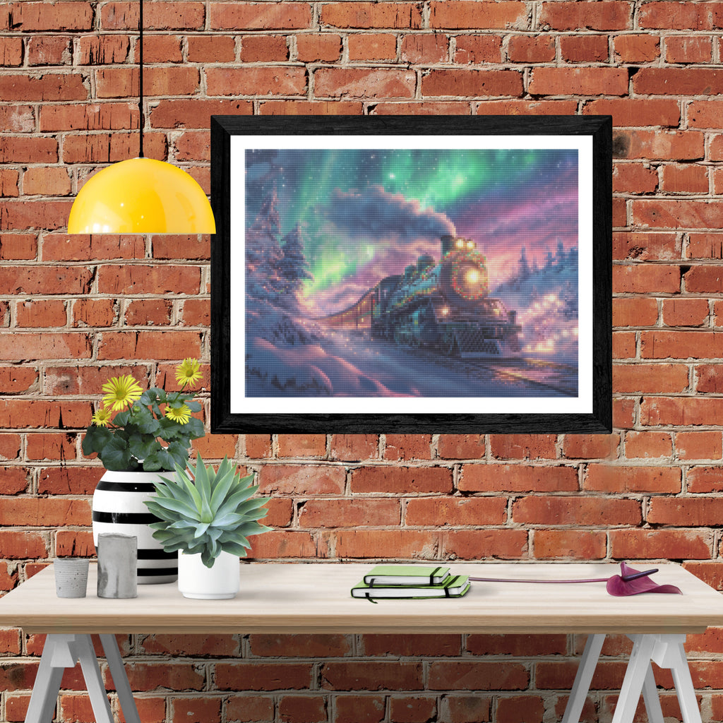 Ready to relax and create something beautiful? Add the 'Holiday Train Beneath the Aurora Diamond Painting Kit to your cart today and start your journey to creative calm.