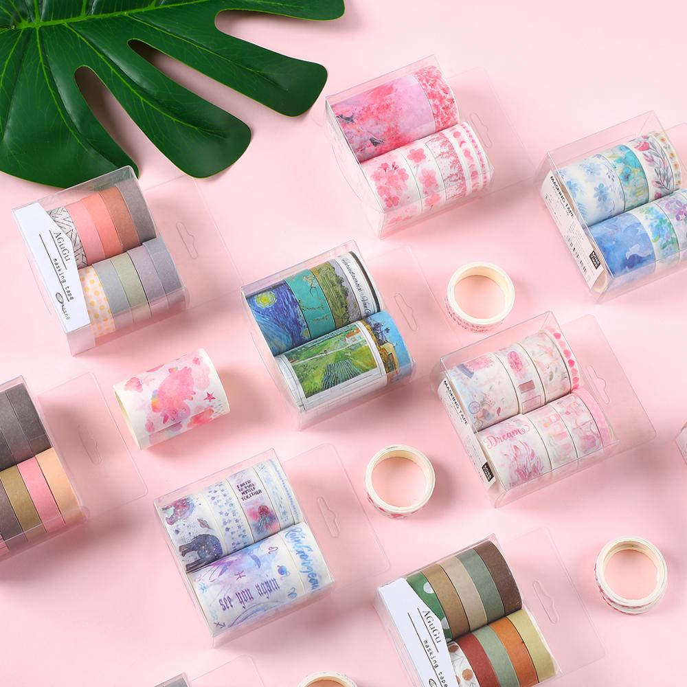 COMPLETE 7-PIECE SET: Includes 7 individual rolls of durable Washi Masking Tape featuring premium patterns. Rolls include: