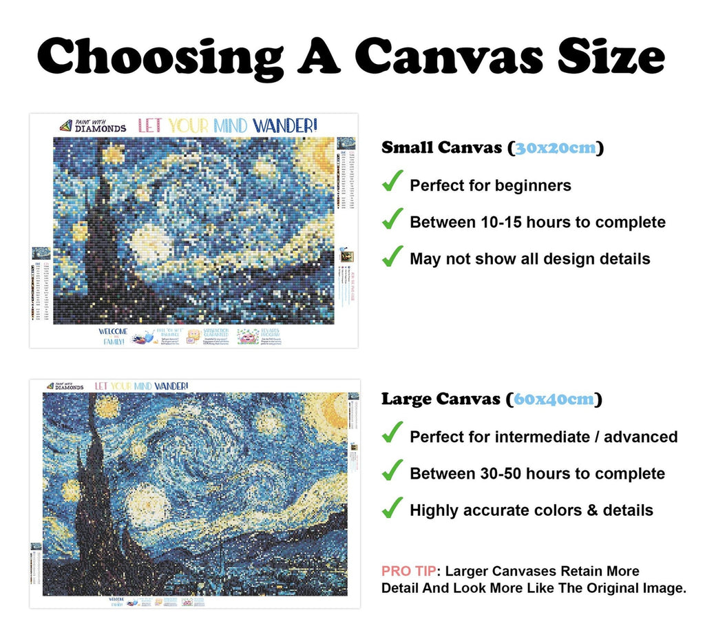 Relax, unwind, and create Diamond Art! The immortal "Starry Night" by Van Gogh is now available at Paint With Diamonds® as a full-drill Diamond Painting Kit in your choice of Round or Square diamonds.