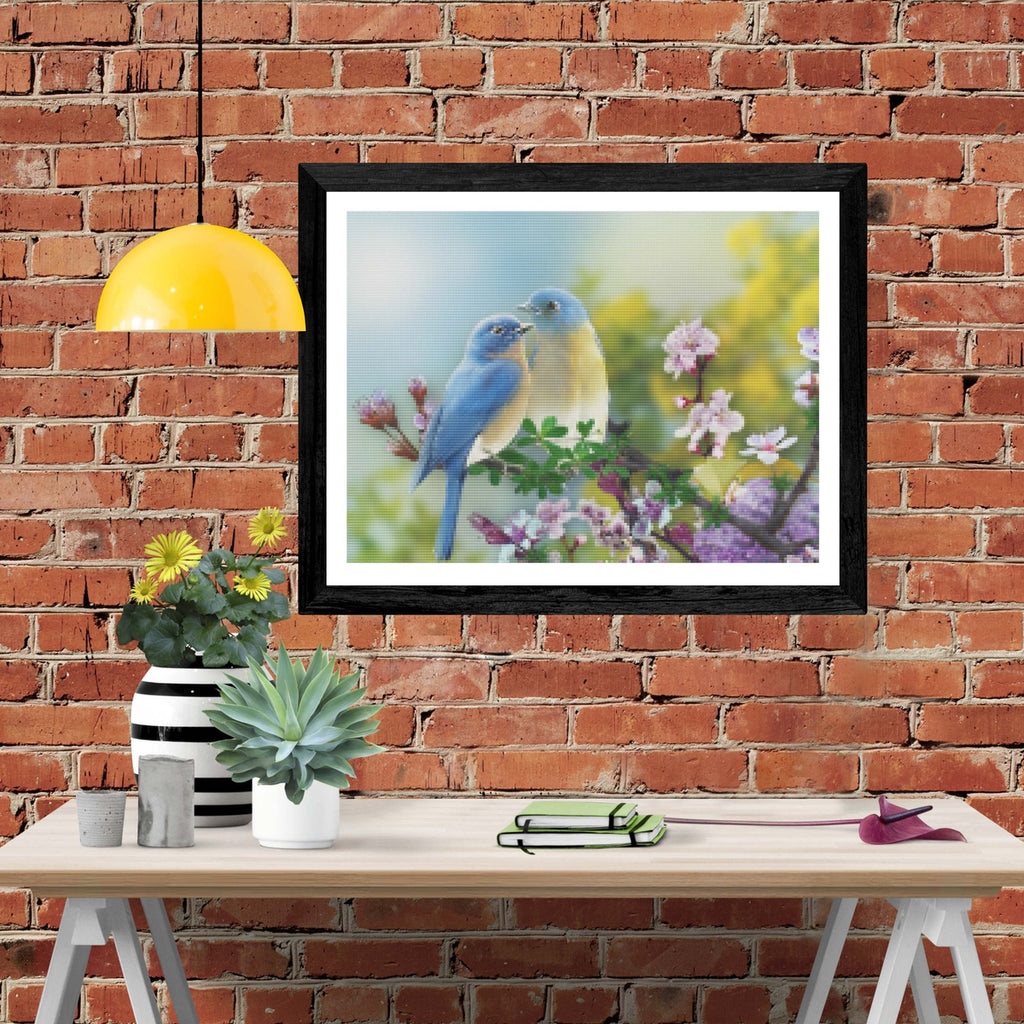 Create your own shimmering DIY wall art, one "diamond" at a time! This gorgeous full drill Diamond Painting Kit is entitled "Pretty Blue Birds" and includes everything you need to get started!