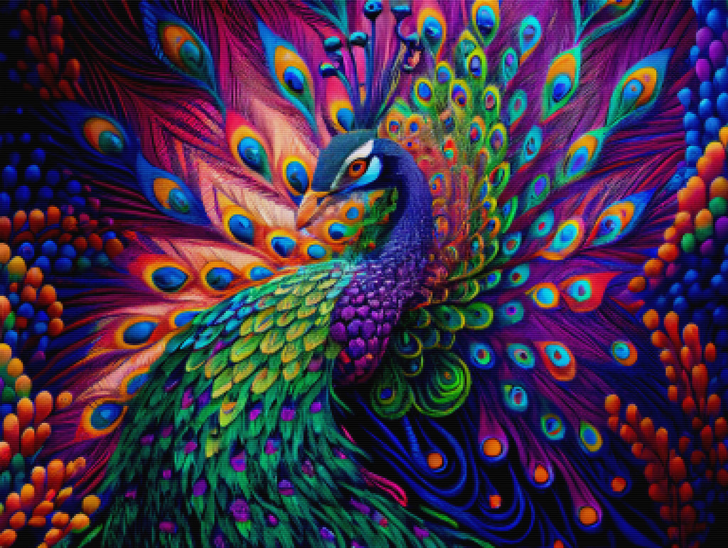 Escape into a world of vibrant colors and creative tranquility with the ‘The Mighty Peacock’ Diamond Painting Kit. This exclusive full-drill design by artist Caleb Smith is available only at Paint With Diamonds. Let your mind unwind as you piece together shimmering diamonds to create a beautiful masterpiece.
