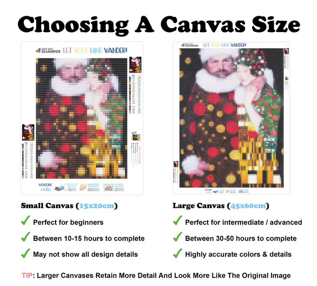 Escape into a world of vibrant colors and creative tranquility with the ‘The Christmas Kiss’ Diamond Painting Kit. This exclusive full-drill design by artist Caleb Smith is available only at Paint With Diamonds. Let your mind unwind as you piece together shimmering diamonds to create a beautiful masterpiece.