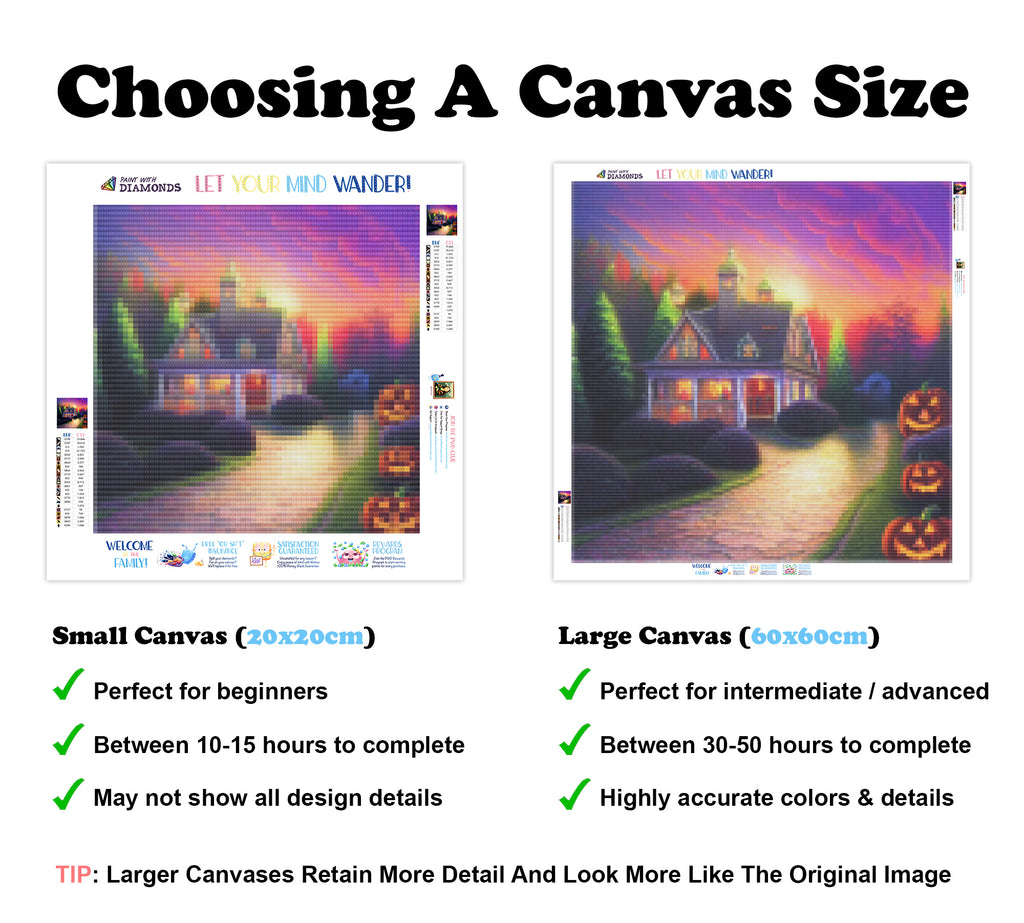 Large canvases show tiny details and all lettering, but may take up to 50+ hours to complete.