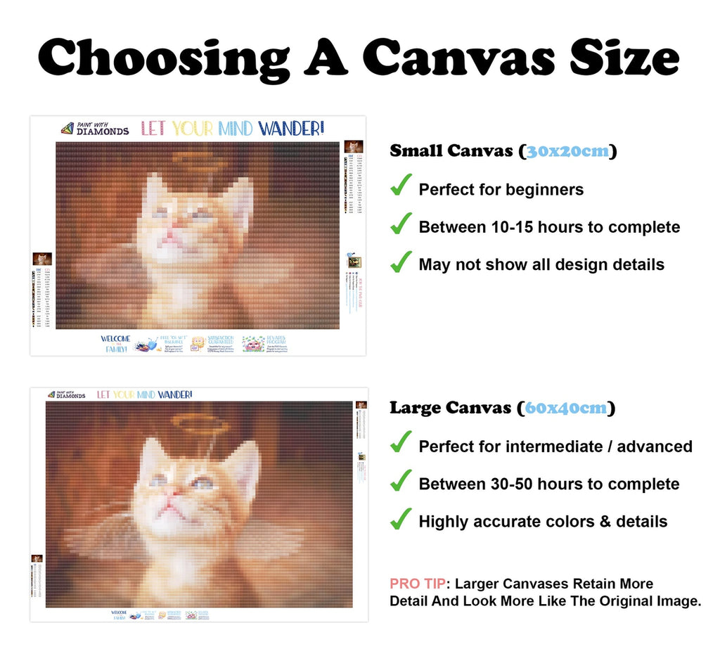 Dog walk on your canvas? Kids turn your diamonds into confetti? We'll replace your kit for free. Never cry over spilled diamonds.