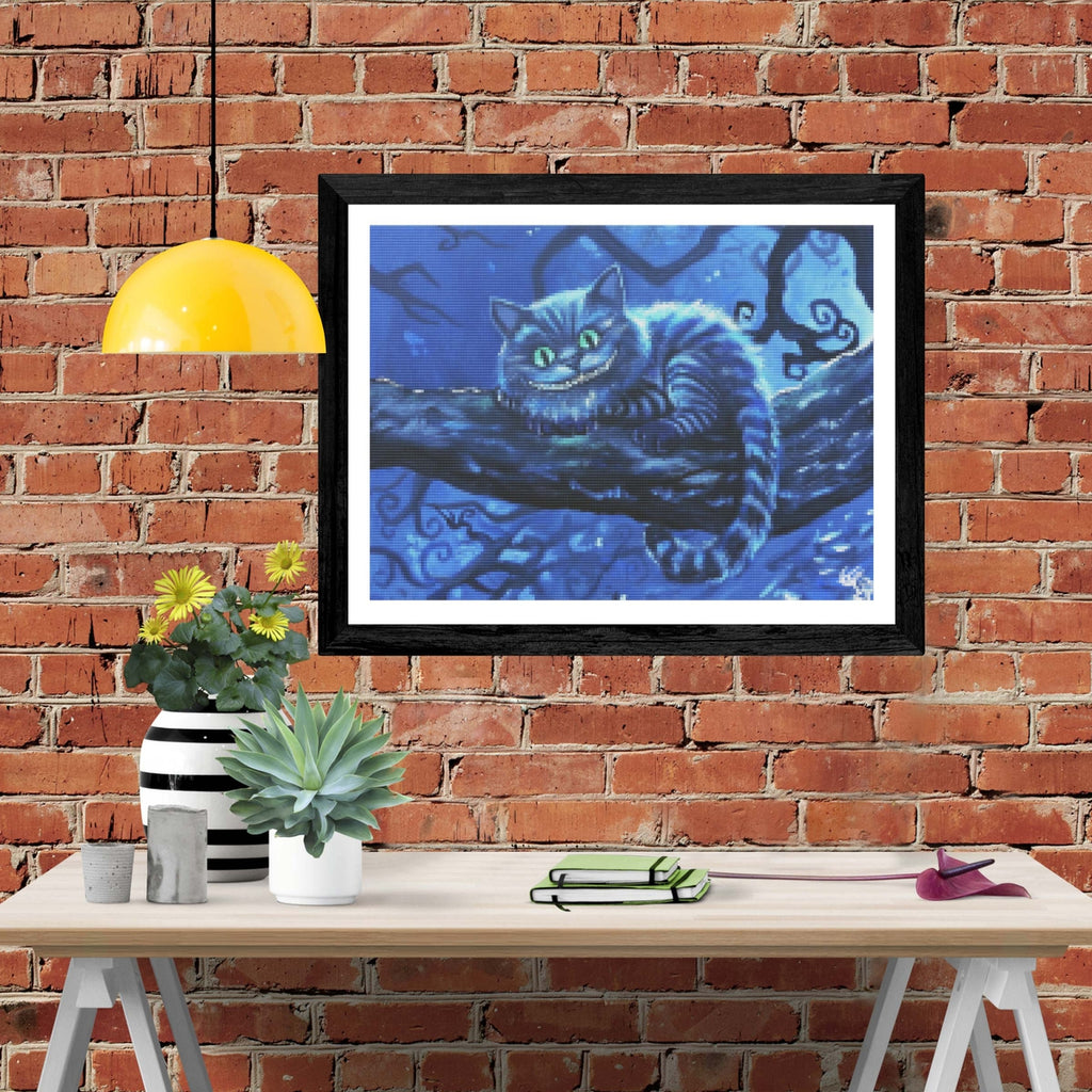 Create your own shimmering DIY wall art, one "diamond" at a time! This gorgeous full drill Diamond Painting Kit is entitled "Cheshire Cat" and includes everything you need to get started!