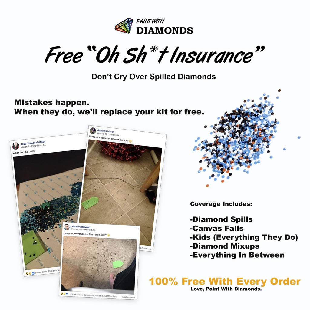 Dog walk on your canvas? Kids turn your diamonds into confetti? We'll replace your kit for free. Never cry over spilled diamonds.