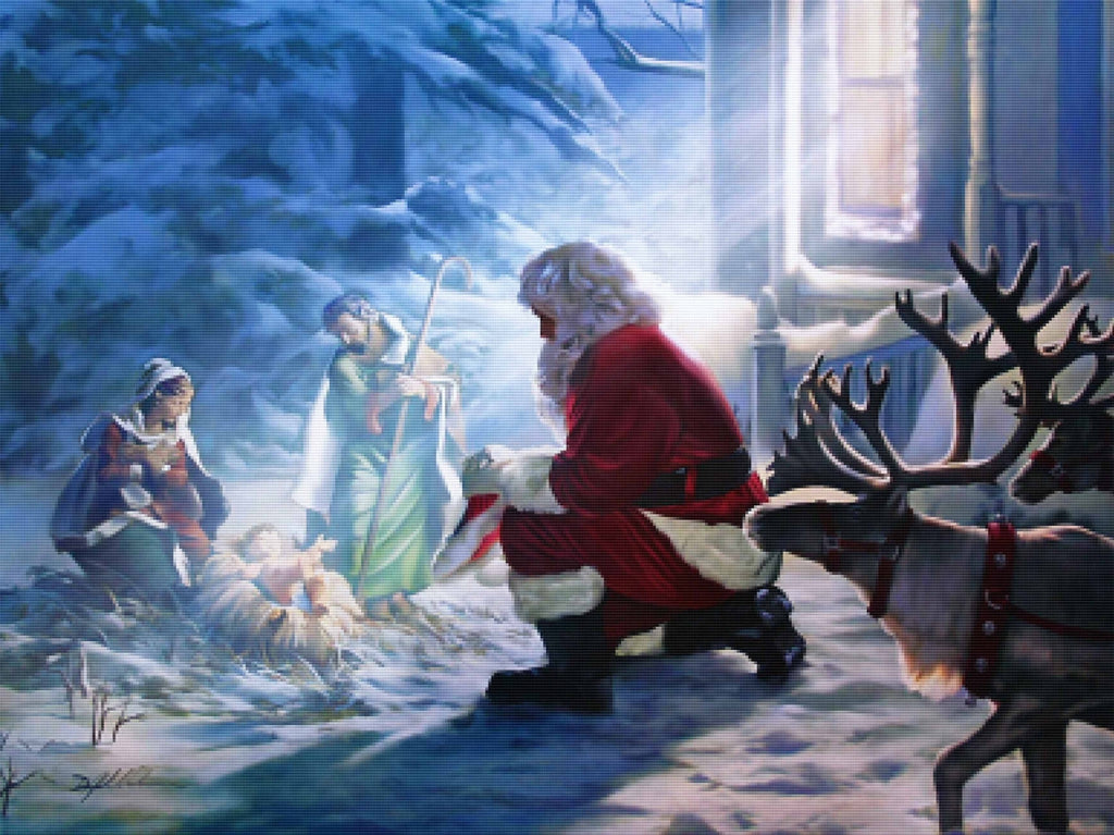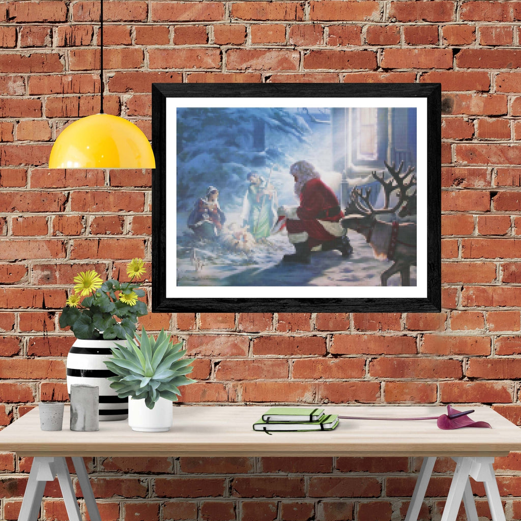 Create your own shimmering DIY wall art, one "diamond" at a time! This gorgeous full drill Diamond Painting Kit is entitled "Santa Paying Homage" and includes everything you need to get started!