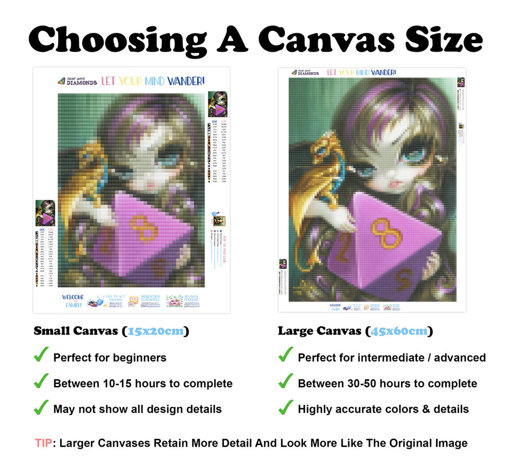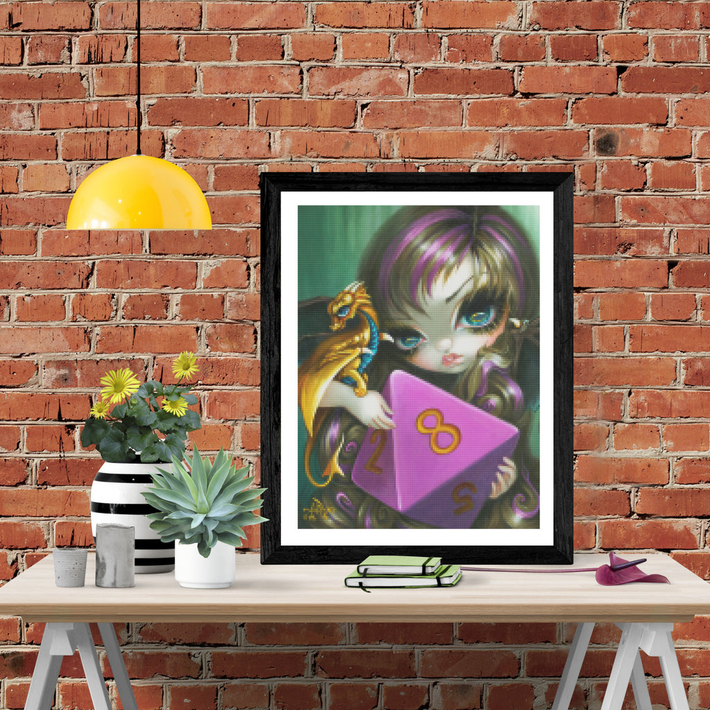 Escape into a world of vibrant colors and creative tranquility with the ‘8 Sided Dice Fairy’ Diamond Painting Kit. This exclusive full-drill design by artist Jasmine Becket-Griffith is available only at Paint With Diamonds. Let your mind unwind as you piece together shimmering diamonds to create a beautiful masterpiece.