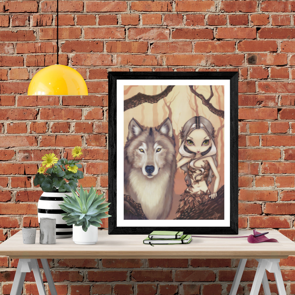 Escape into a world of vibrant colors and creative tranquility with the ‘A Wolfish Friend’ Diamond Painting Kit. This exclusive full-drill design by artist Jasmine Becket-Griffith is available only at Paint With Diamonds. Let your mind unwind as you piece together shimmering diamonds to create a beautiful masterpiece.