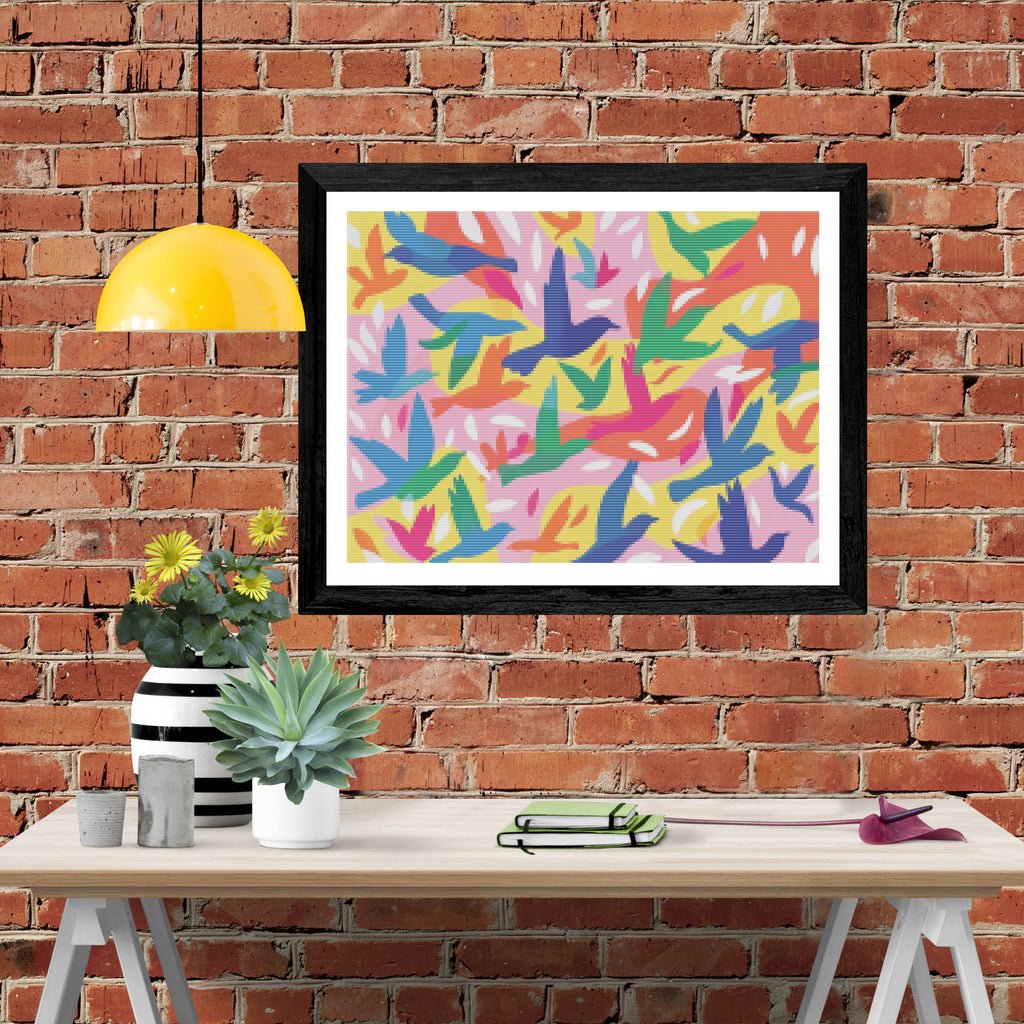 Escape into a world of vibrant colors and creative tranquility with the ‘Abstract Spring Birds’ Diamond Painting Kit. This exclusive full-drill design by artist Caleb Smith is available only at Paint With Diamonds. Let your mind unwind as you piece together shimmering diamonds to create a beautiful masterpiece.