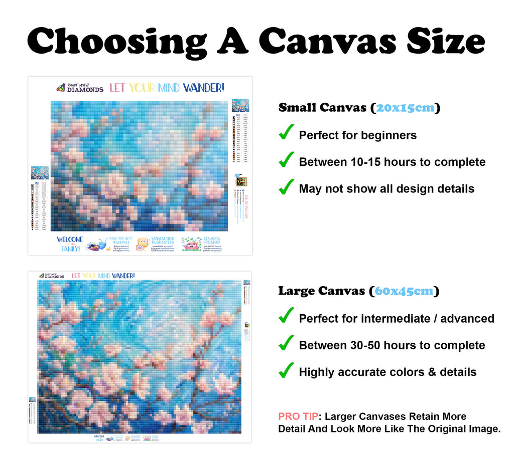 Premium Quality Diamond Painting Kit: Includes a velvety-soft adhesive canvas, eco-friendly shimmering resin diamonds, and a premium toolkit - everything you ned to get started on your next masterpiece.