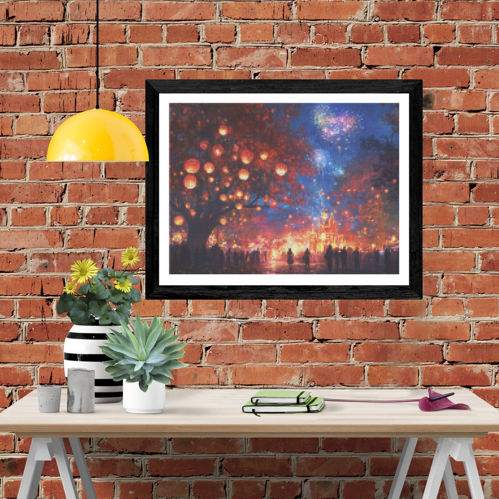 Escape into a world of vibrant colors and creative tranquility with the ‘Autumn Festival Night’ Diamond Painting Kit. This exclusive full-drill design by artist Caleb Smith is available only at Paint With Diamonds. Let your mind unwind as you piece together shimmering diamonds to create a beautiful masterpiece.