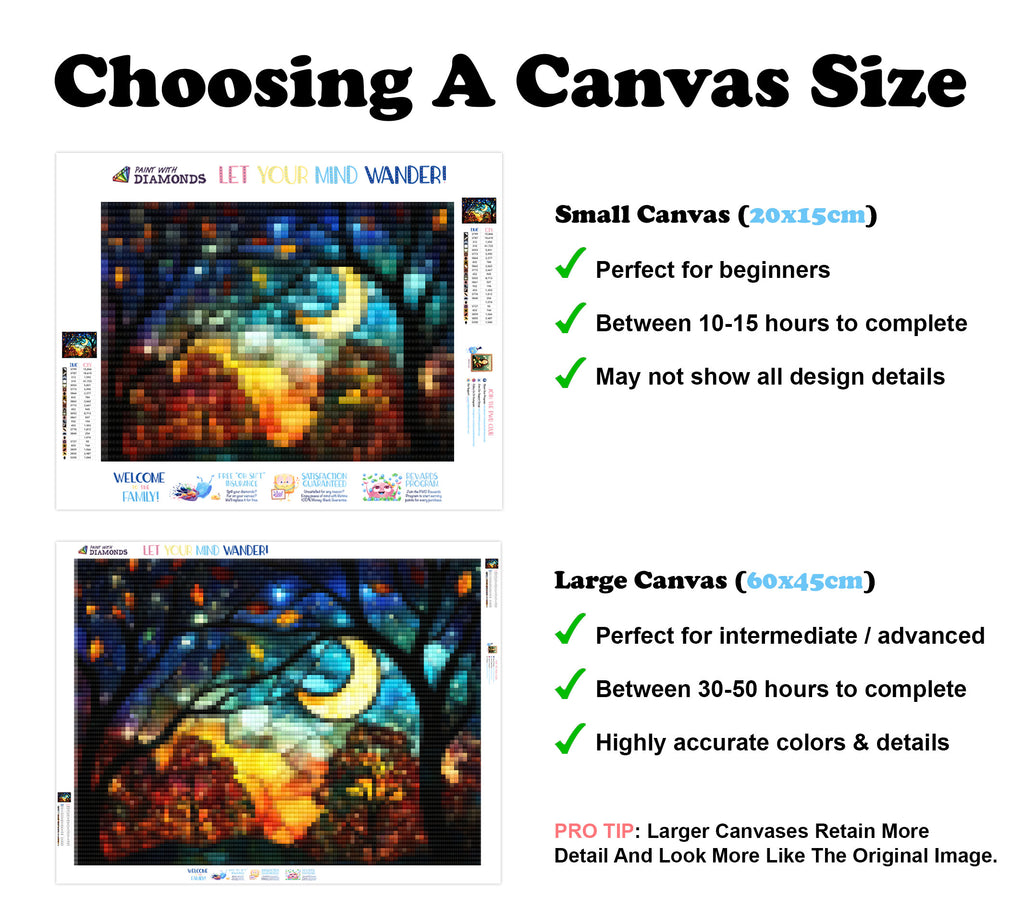 Premium Quality Diamond Painting Kit: Includes a velvety-soft adhesive canvas, eco-friendly shimmering resin diamonds, and a premium toolkit - everything you ned to get started on your next masterpiece.