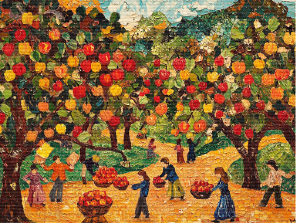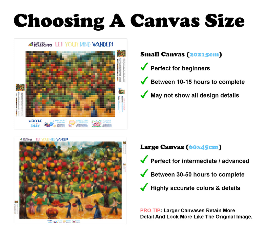 Escape into a world of vibrant colors and creative tranquility with the ‘Autumn Orchard Ripe Apples’ Diamond Painting Kit. This exclusive full-drill design by artist Caleb Smith is available only at Paint With Diamonds. Let your mind unwind as you piece together shimmering diamonds to create a beautiful masterpiece.
