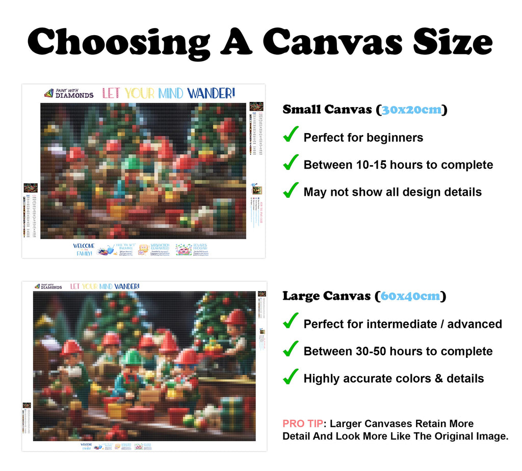 Escape into a world of vibrant colors and creative tranquility with the ‘Busy Elves Colorful Toys’ Diamond Painting Kit. This exclusive full-drill design by artist Caleb Smith is available only at Paint With Diamonds. Let your mind unwind as you piece together shimmering diamonds to create a beautiful masterpiece.
