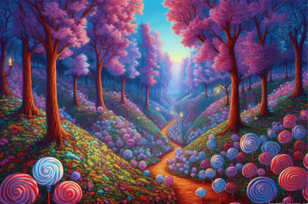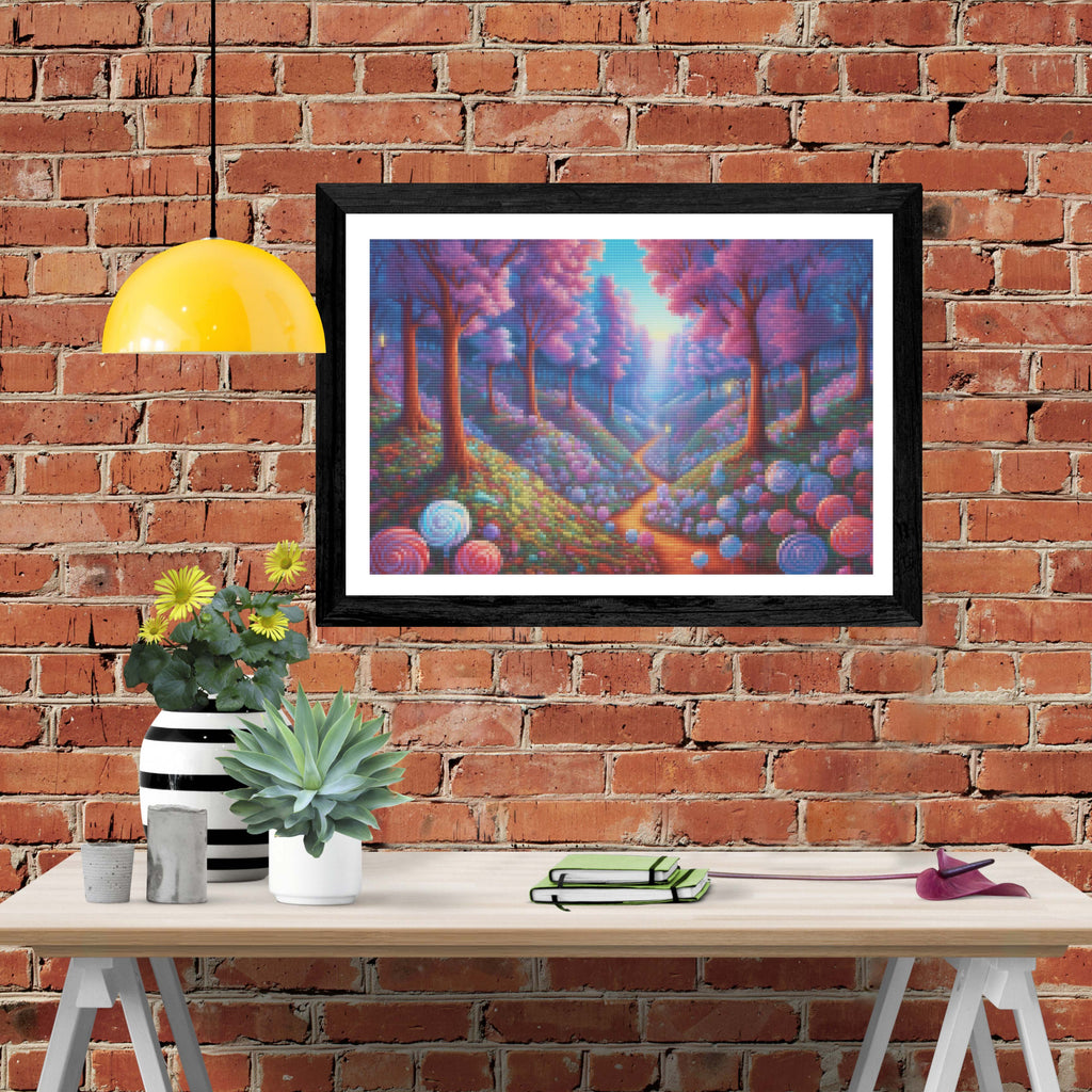 Escape into a world of vibrant colors and creative tranquility with the ‘Candy Cane Forest’ Diamond Painting Kit. This exclusive full-drill design by artist Caleb Smith is available only at Paint With Diamonds. Let your mind unwind as you piece together shimmering diamonds to create a beautiful masterpiece.