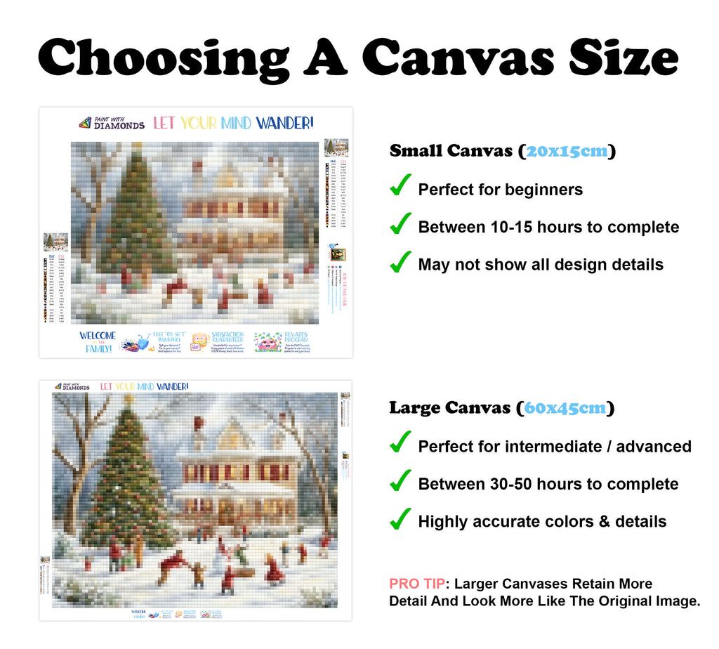 Large canvases show tiny details and all lettering, but may take up to 50+ hours to complete.
