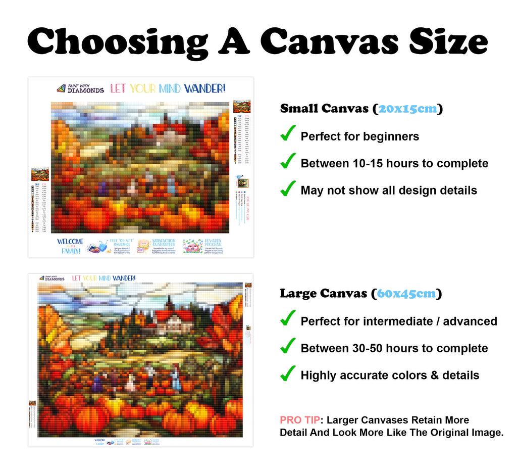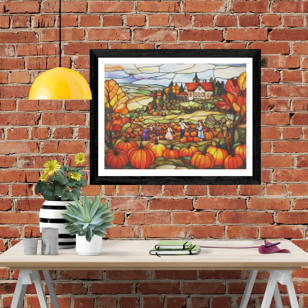 Escape into a world of vibrant colors and creative tranquility with the ‘Charming Pumpkin Patch’ Diamond Painting Kit. This exclusive full-drill design by artist Caleb Smith is available only at Paint With Diamonds. Let your mind unwind as you piece together shimmering diamonds to create a beautiful masterpiece.