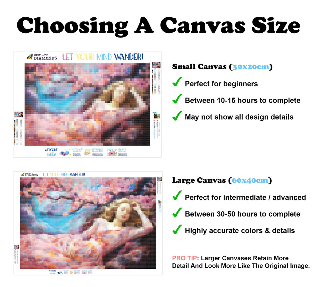 Premium Quality Diamond Painting Kit: Includes a velvety-soft adhesive canvas, eco-friendly shimmering resin diamonds, and a premium toolkit - everything you ned to get started on your next masterpiece.
