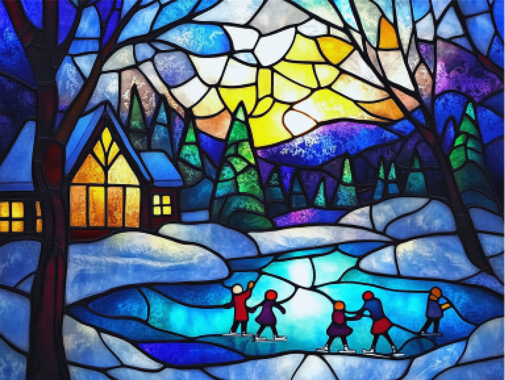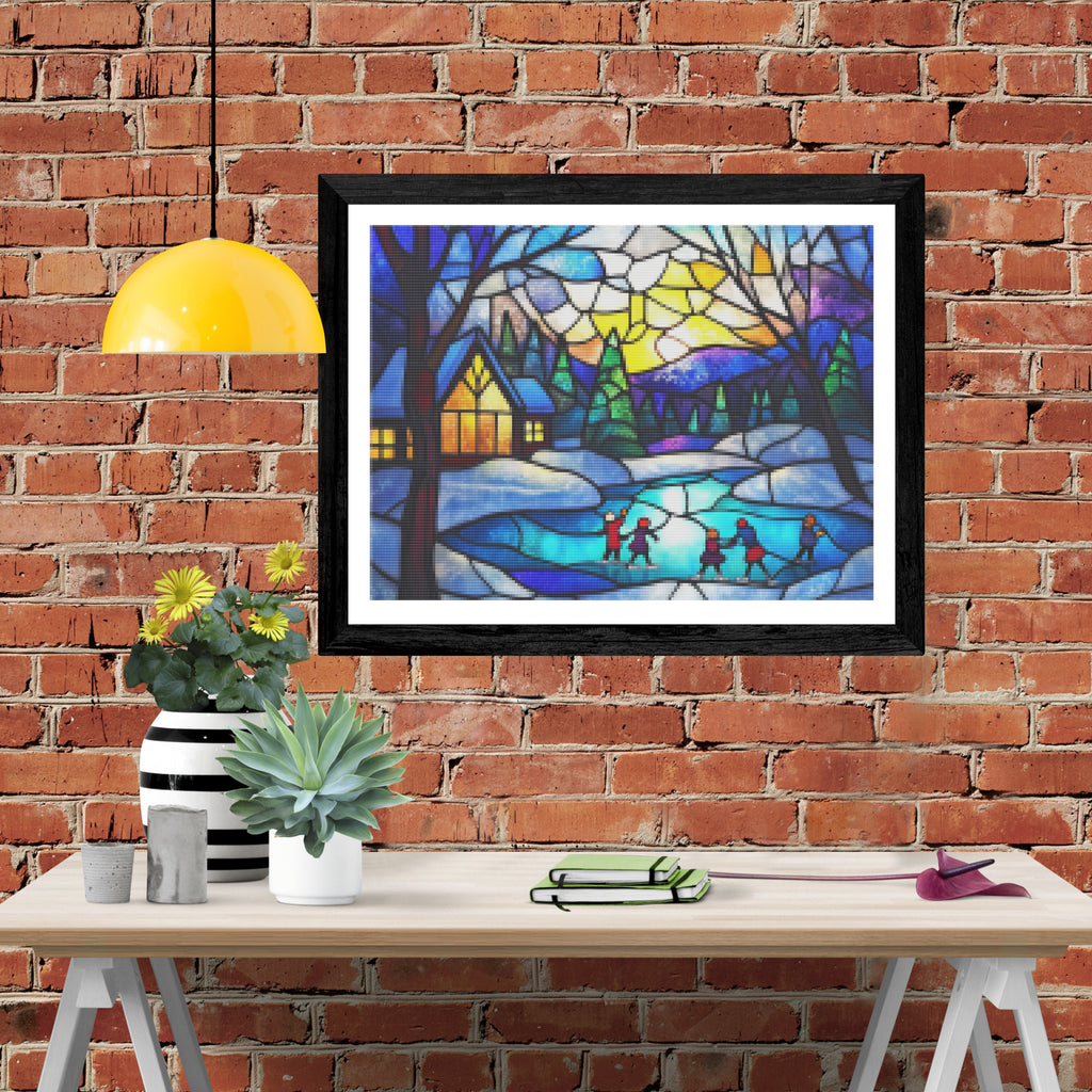 Ready to relax and create something beautiful? Add the 'Children Ice Skating Stained Glass Diamond Painting Kit to your cart today and start your journey to creative calm.