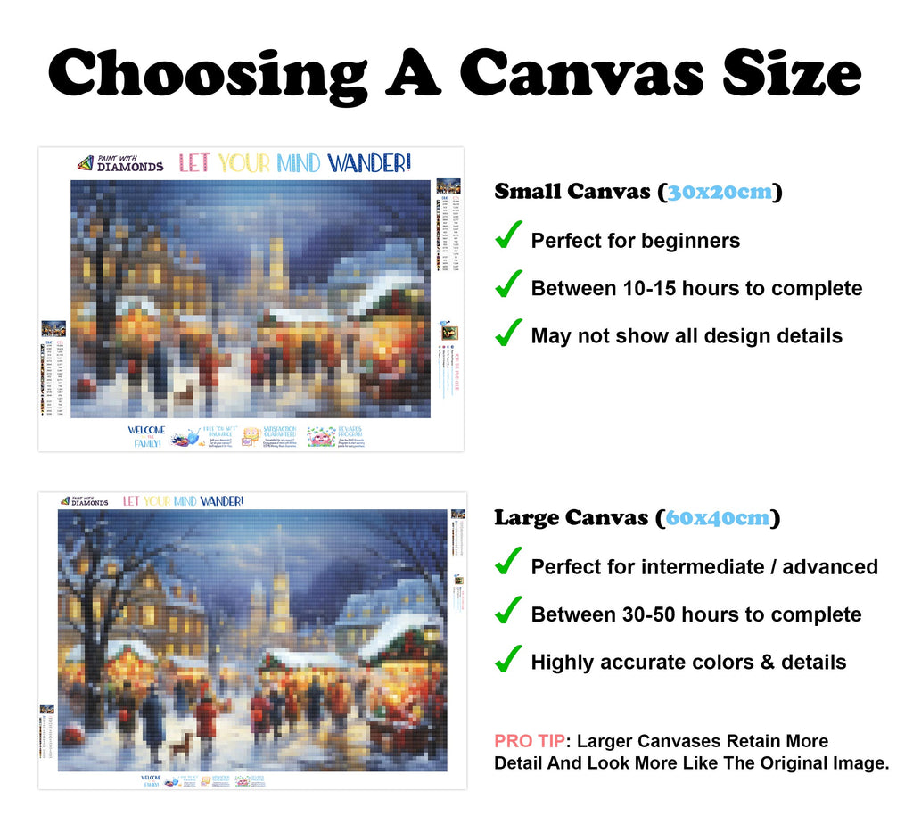 Escape into a world of vibrant colors and creative tranquility with the ‘Christmas Street Market’ Diamond Painting Kit. This exclusive full-drill design by artist Caleb Smith is available only at Paint With Diamonds. Let your mind unwind as you piece together shimmering diamonds to create a beautiful masterpiece.
