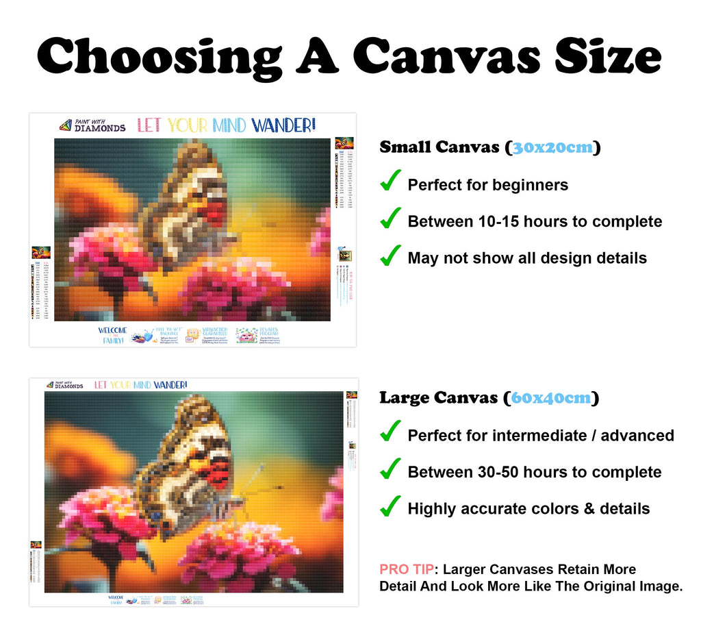 Premium Quality Diamond Painting Kit: Includes a velvety-soft adhesive canvas, eco-friendly shimmering resin diamonds, and a premium toolkit - everything you ned to get started on your next masterpiece.