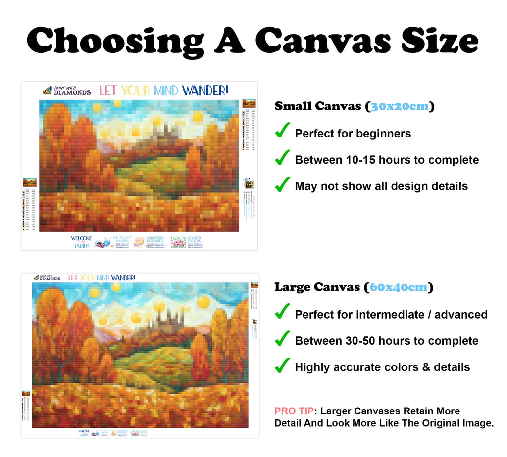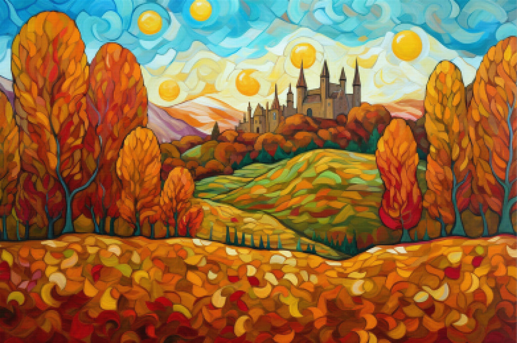 Escape into a world of vibrant colors and creative tranquility with the ‘Colorful Castle In Fall Forest’ Diamond Painting Kit. This exclusive full-drill design by artist Caleb Smith is available only at Paint With Diamonds. Let your mind unwind as you piece together shimmering diamonds to create a beautiful masterpiece.