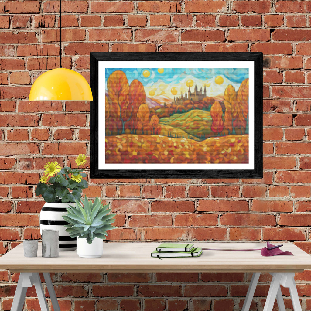 Ready to relax and create something beautiful? Add the 'Colorful Castle In Fall Forest Diamond Painting Kit to your cart today and start your journey to creative calm.
