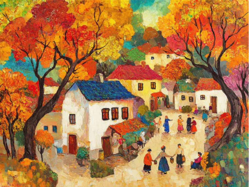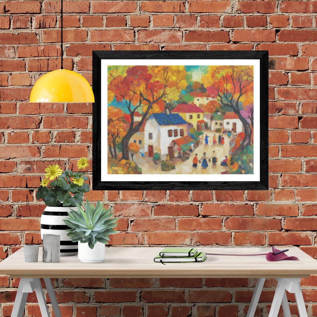 Ready to relax and create something beautiful? Add the 'Colorful Painting Of A Quaint Village Diamond Painting Kit to your cart today and start your journey to creative calm.