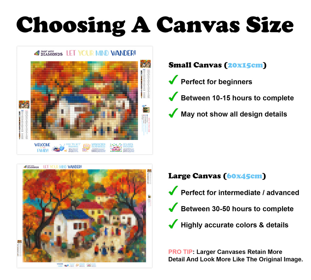Escape into a world of vibrant colors and creative tranquility with the ‘Colorful Painting Of A Quaint Village’ Diamond Painting Kit. This exclusive full-drill design by artist Caleb Smith is available only at Paint With Diamonds. Let your mind unwind as you piece together shimmering diamonds to create a beautiful masterpiece.
