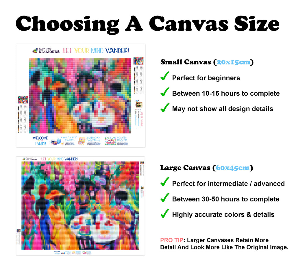 Premium Quality Diamond Painting Kit: Includes a velvety-soft adhesive canvas, eco-friendly shimmering resin diamonds, and a premium toolkit - everything you ned to get started on your next masterpiece.