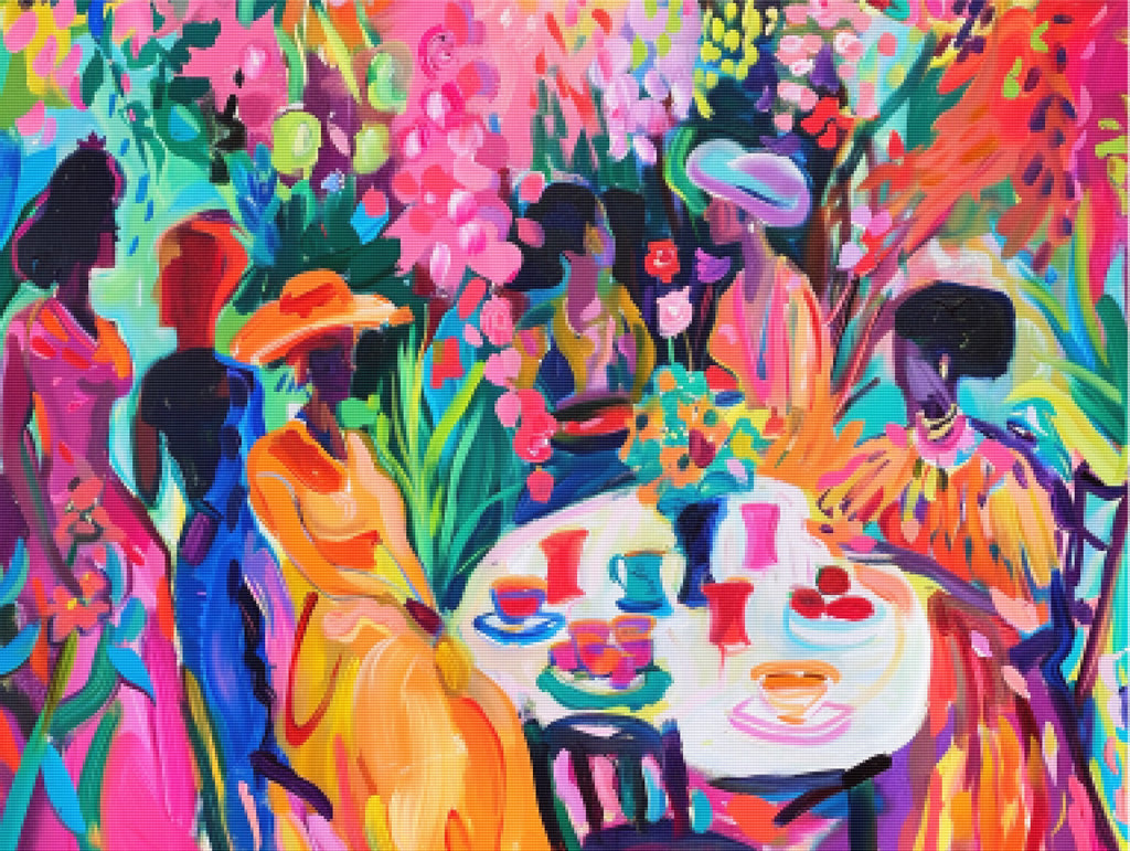 Escape into a world of vibrant colors and creative tranquility with the ‘Colorful Scene Of A Garden Party’ Diamond Painting Kit. This exclusive full-drill design by artist Caleb Smith is available only at Paint With Diamonds. Let your mind unwind as you piece together shimmering diamonds to create a beautiful masterpiece.