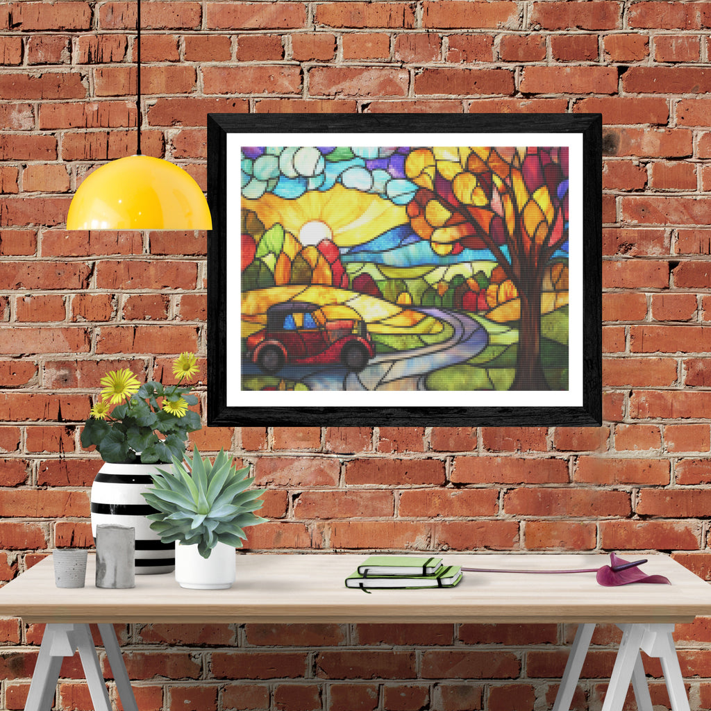 Escape into a world of vibrant colors and creative tranquility with the ‘Colorful Scenic Autumn Drive’ Diamond Painting Kit. This exclusive full-drill design by artist Caleb Smith is available only at Paint With Diamonds. Let your mind unwind as you piece together shimmering diamonds to create a beautiful masterpiece.