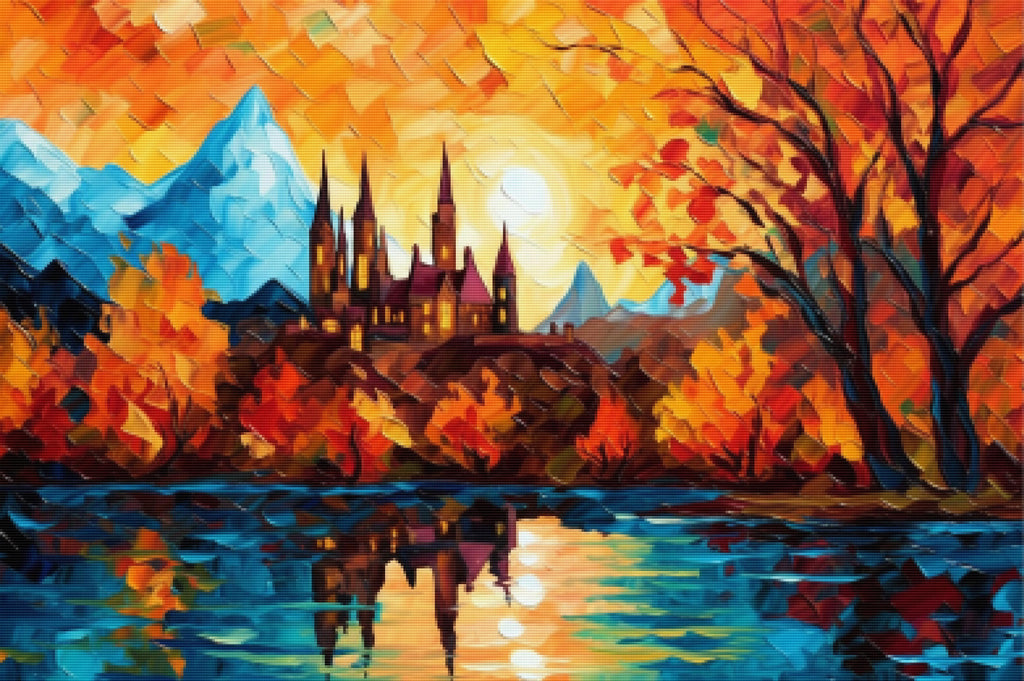 Escape into a world of vibrant colors and creative tranquility with the ‘Cozy Castle In Fall’ Diamond Painting Kit. This exclusive full-drill design by artist Caleb Smith is available only at Paint With Diamonds. Let your mind unwind as you piece together shimmering diamonds to create a beautiful masterpiece.