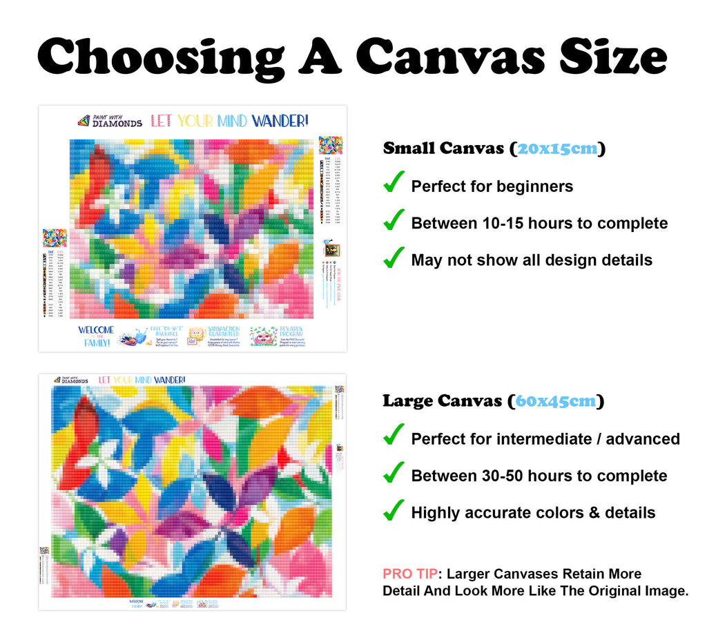 Premium Quality Diamond Painting Kit: Includes a velvety-soft adhesive canvas, eco-friendly shimmering resin diamonds, and a premium toolkit - everything you ned to get started on your next masterpiece.