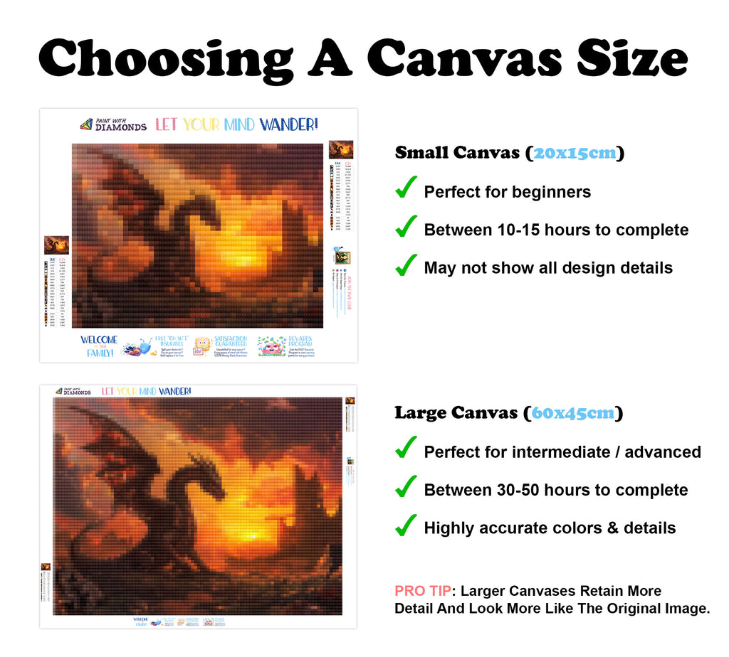 Large canvases show tiny details and all lettering, but may take up to 50+ hours to complete.