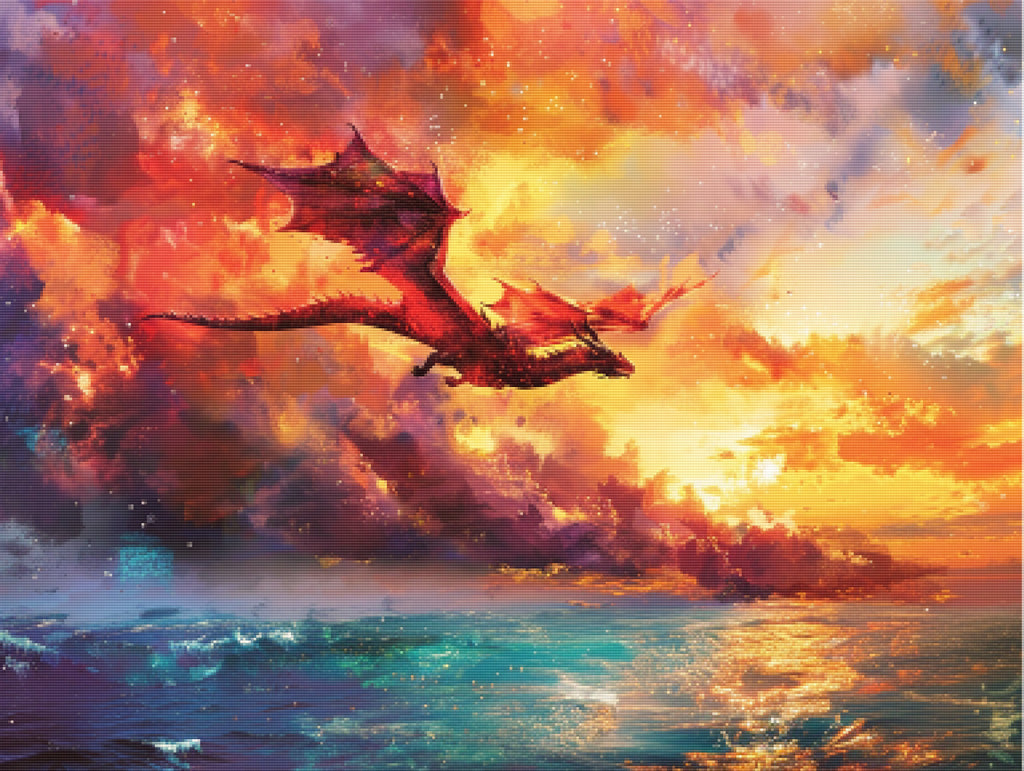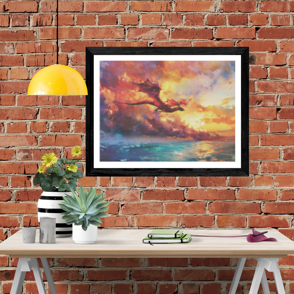 Ready to relax and create something beautiful? Add the 'Dragon Soaring Through A Dramatic Sunset Diamond Painting Kit to your cart today and start your journey to creative calm.