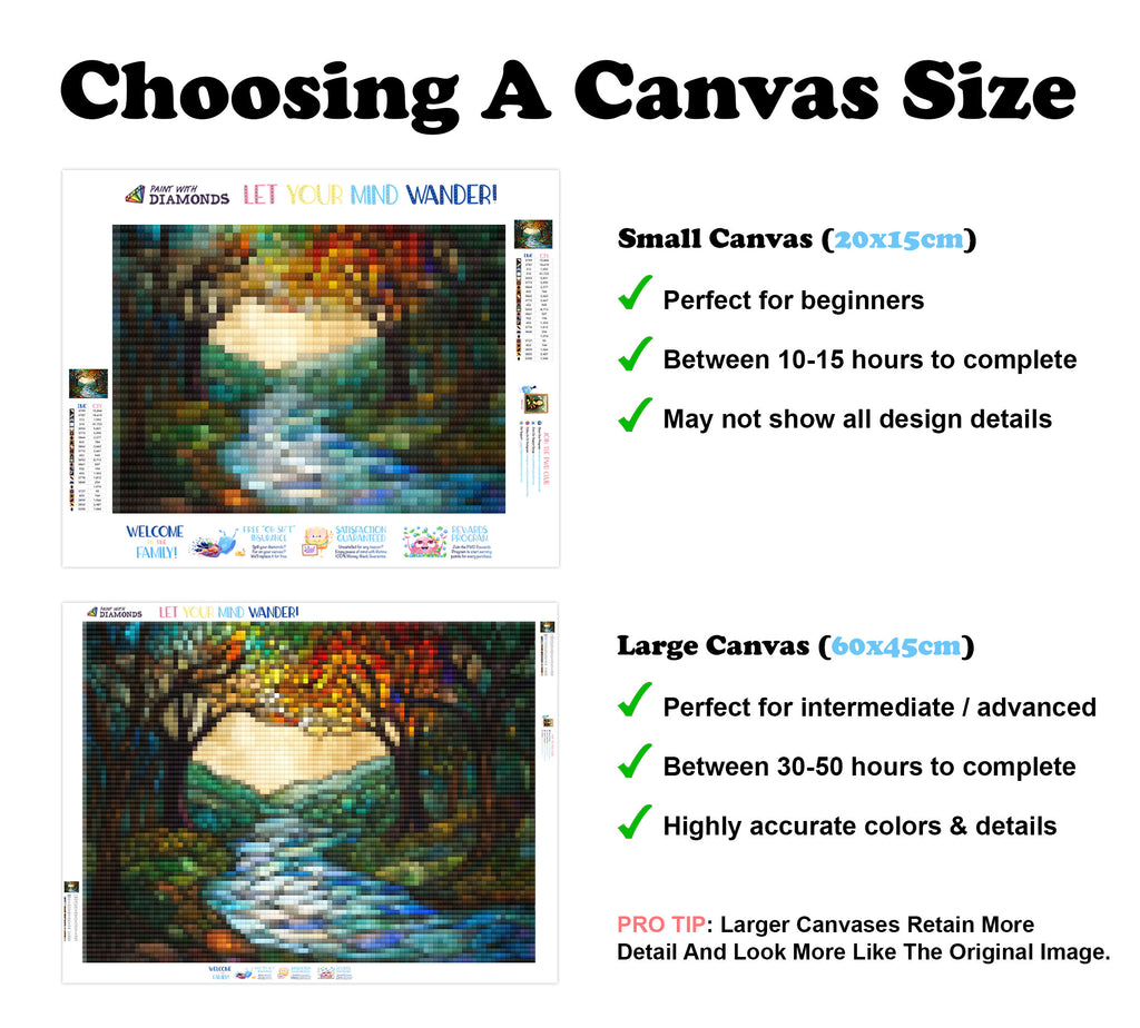 Premium Quality Diamond Painting Kit: Includes a velvety-soft adhesive canvas, eco-friendly shimmering resin diamonds, and a premium toolkit - everything you ned to get started on your next masterpiece.
