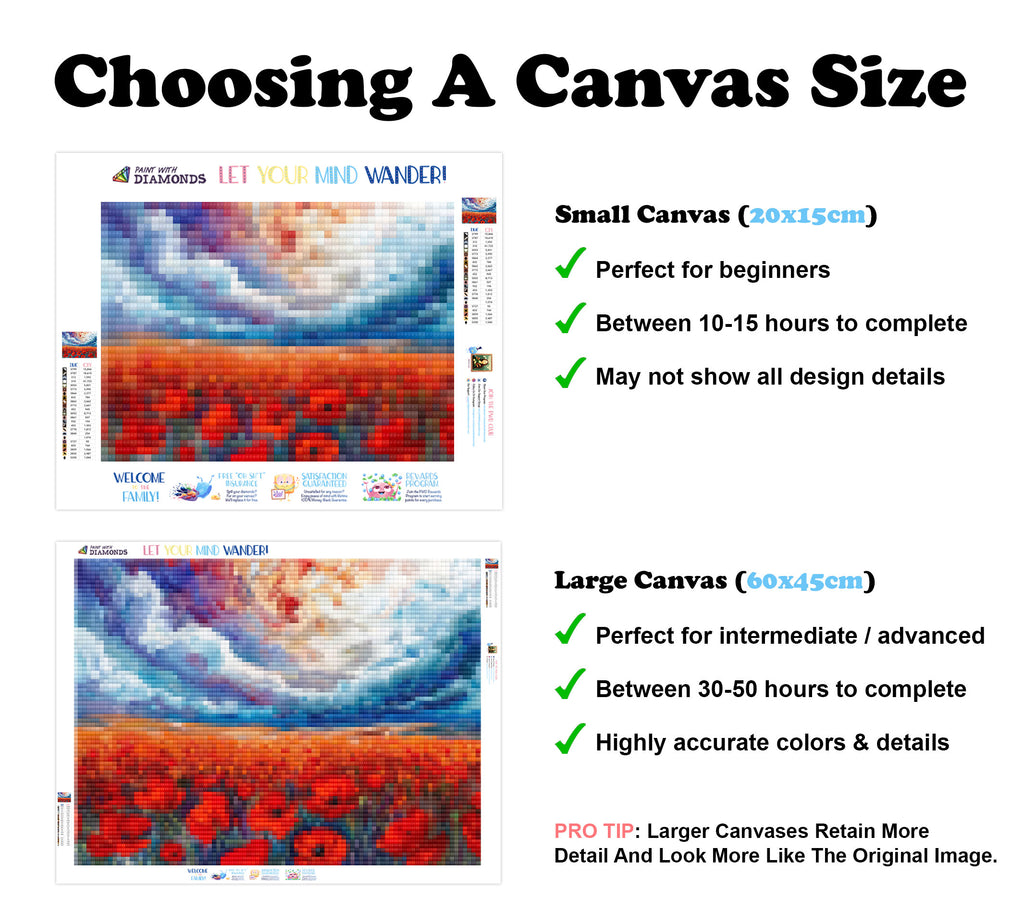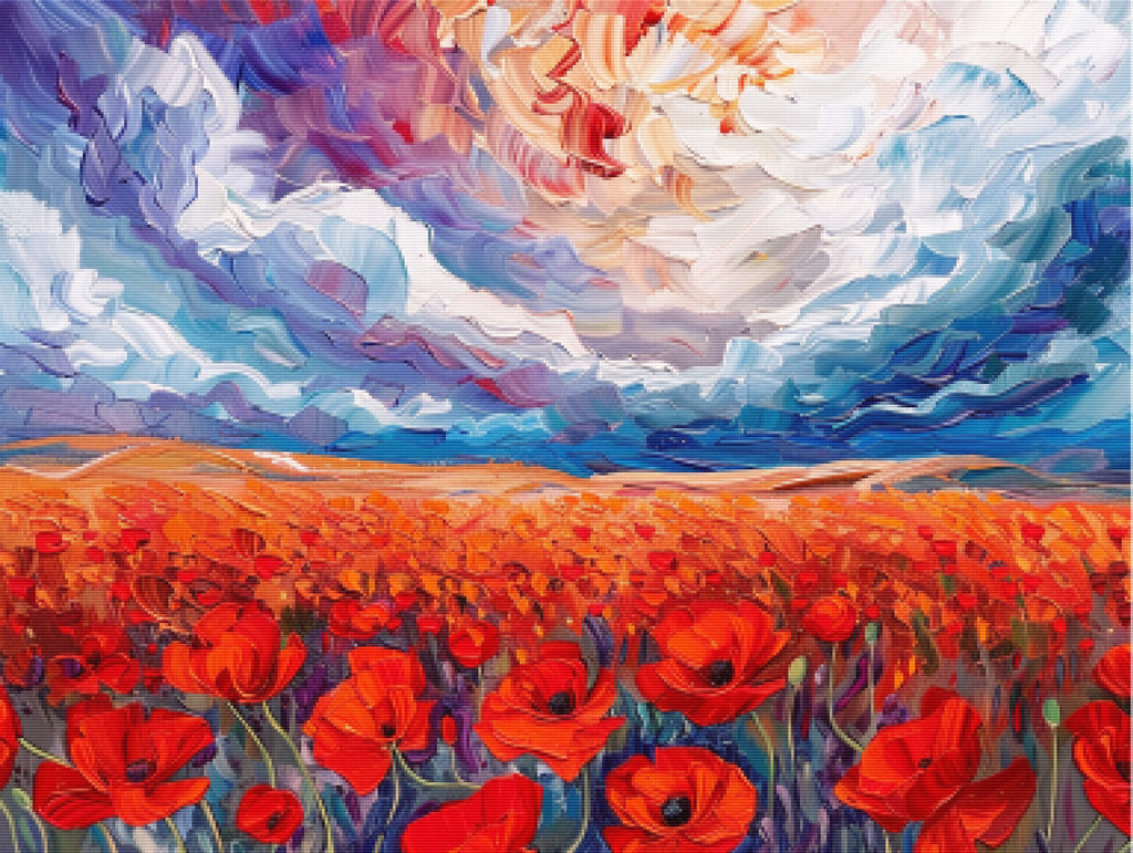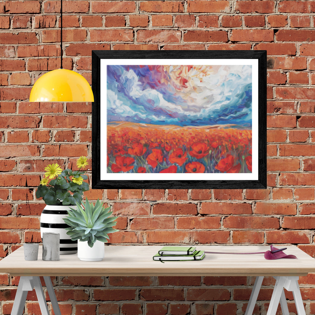 Escape into a world of vibrant colors and creative tranquility with the ‘Expanse Of Red Poppy Fields’ Diamond Painting Kit. This exclusive full-drill design by artist Caleb Smith is available only at Paint With Diamonds. Let your mind unwind as you piece together shimmering diamonds to create a beautiful masterpiece.