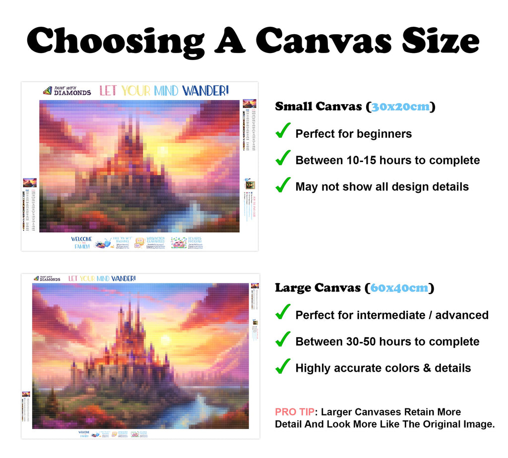 Escape into a world of vibrant colors and creative tranquility with the ‘Fantasy Castle At Sunset’ Diamond Painting Kit. This exclusive full-drill design by artist Caleb Smith is available only at Paint With Diamonds. Let your mind unwind as you piece together shimmering diamonds to create a beautiful masterpiece.