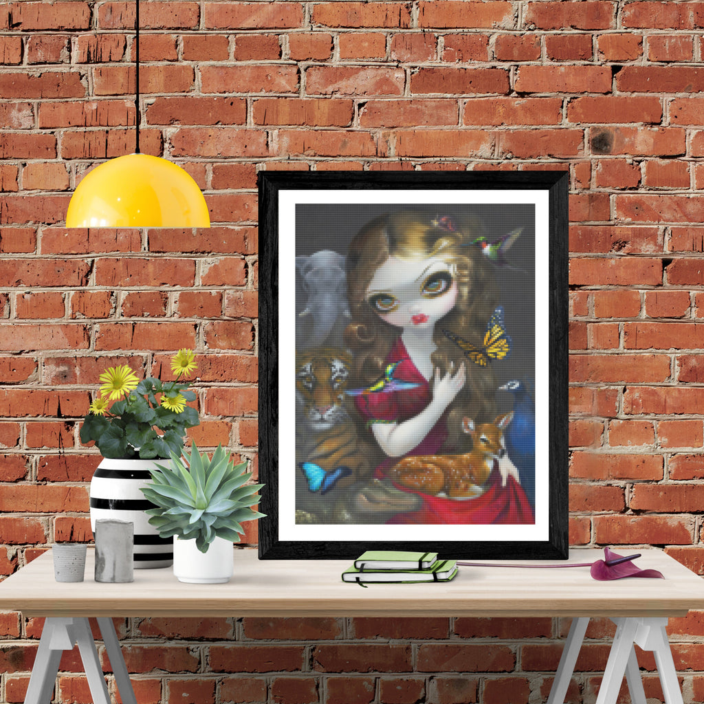 Escape into a world of vibrant colors and creative tranquility with the ‘Fauna’ Diamond Painting Kit. This exclusive full-drill design by artist Jasmine Becket-Griffith is available only at Paint With Diamonds. Let your mind unwind as you piece together shimmering diamonds to create a beautiful masterpiece.