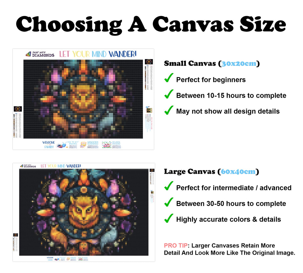 Premium Quality Diamond Painting Kit: Includes a velvety-soft adhesive canvas, eco-friendly shimmering resin diamonds, and a premium toolkit - everything you ned to get started on your next masterpiece.