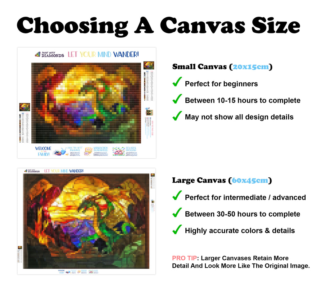 Escape into a world of vibrant colors and creative tranquility with the ‘Fierce Dragon Lair’ Diamond Painting Kit. This exclusive full-drill design by artist Caleb Smith is available only at Paint With Diamonds. Let your mind unwind as you piece together shimmering diamonds to create a beautiful masterpiece.