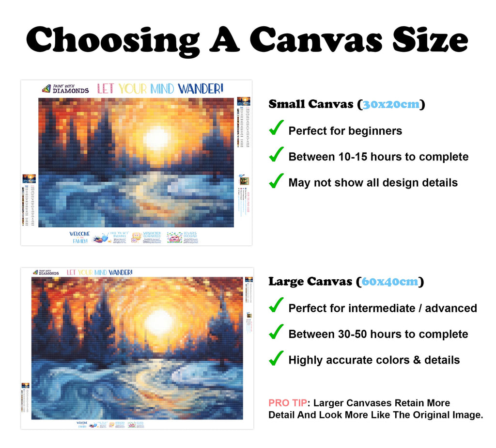 Premium Quality Diamond Painting Kit: Includes a velvety-soft adhesive canvas, eco-friendly shimmering resin diamonds, and a premium toolkit - everything you ned to get started on your next masterpiece.