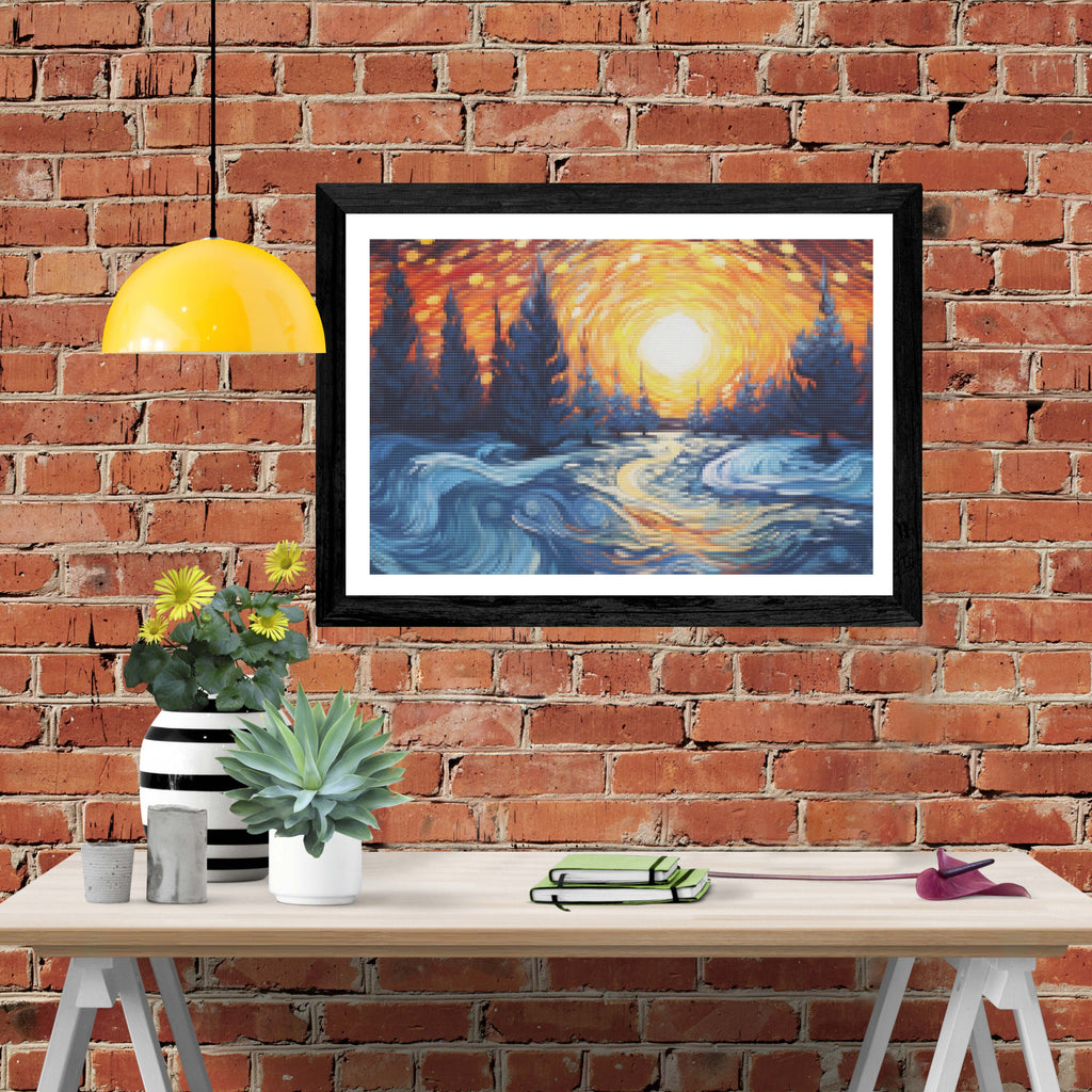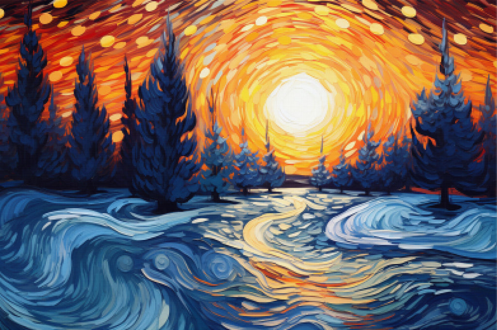 Escape into a world of vibrant colors and creative tranquility with the ‘Frozen River Under Cypress Trees’ Diamond Painting Kit. This exclusive full-drill design by artist Caleb Smith is available only at Paint With Diamonds. Let your mind unwind as you piece together shimmering diamonds to create a beautiful masterpiece.