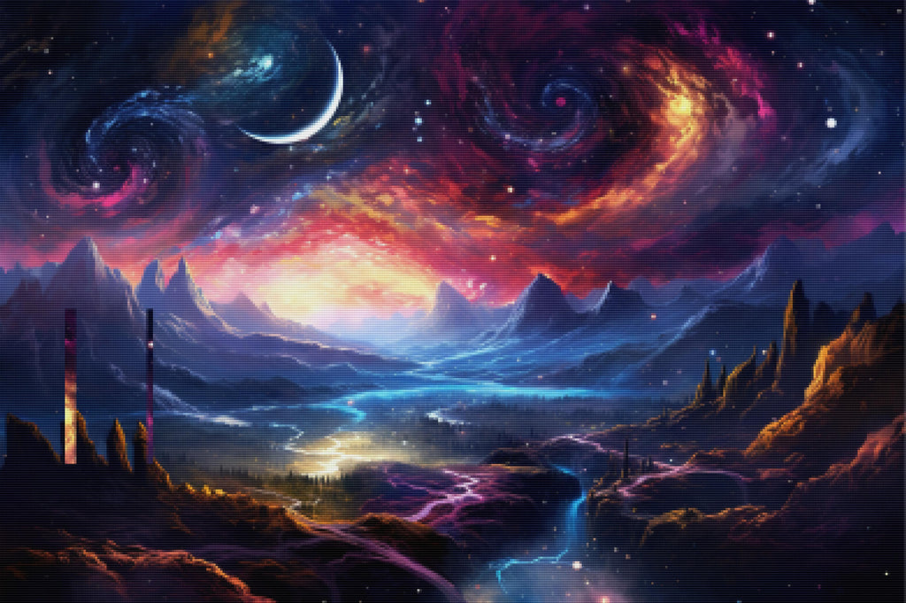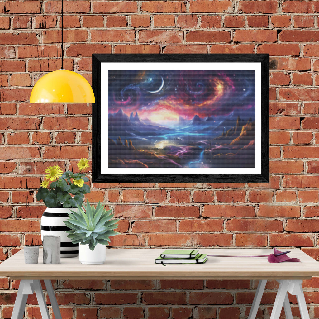 Escape into a world of vibrant colors and creative tranquility with the ‘Galactic Vista’ Diamond Painting Kit. This exclusive full-drill design by artist Caleb Smith is available only at Paint With Diamonds. Let your mind unwind as you piece together shimmering diamonds to create a beautiful masterpiece.