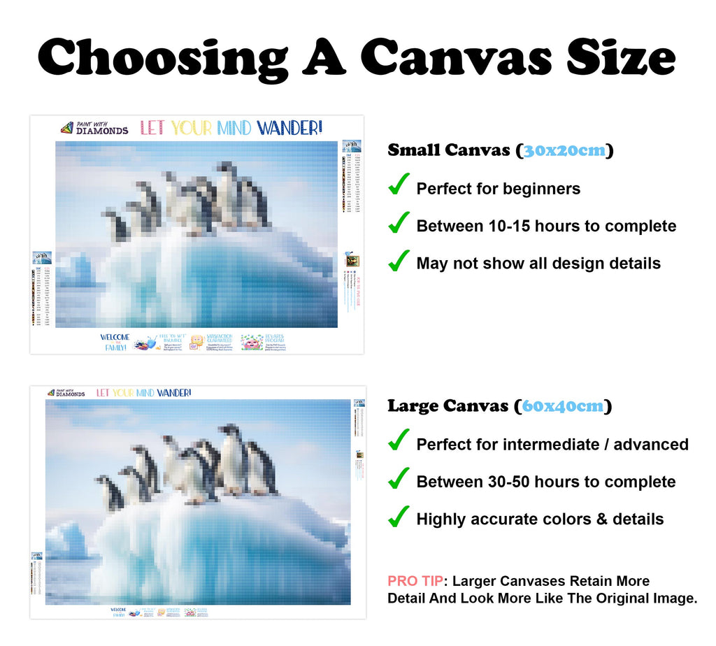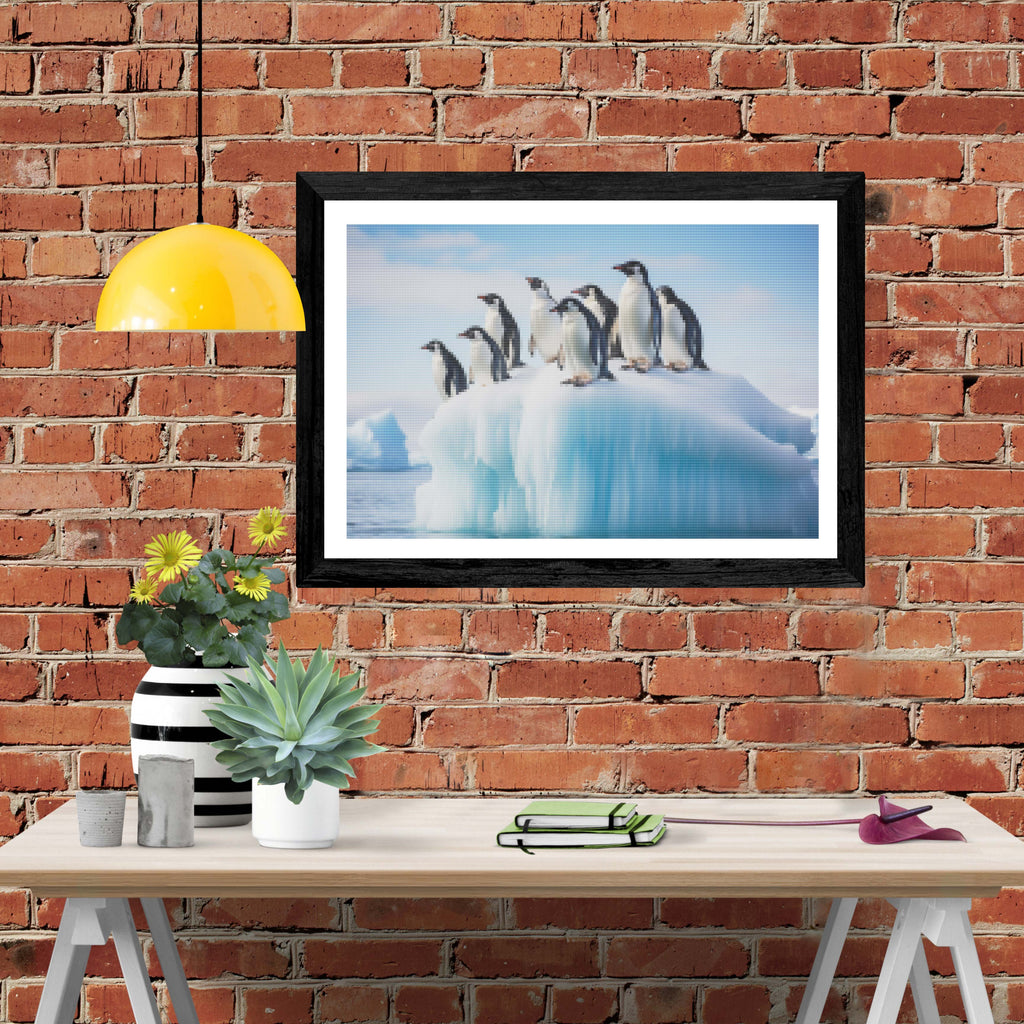 Escape into a world of vibrant colors and creative tranquility with the ‘Group Of Penguins Iceberg’ Diamond Painting Kit. This exclusive full-drill design by artist Caleb Smith is available only at Paint With Diamonds. Let your mind unwind as you piece together shimmering diamonds to create a beautiful masterpiece.