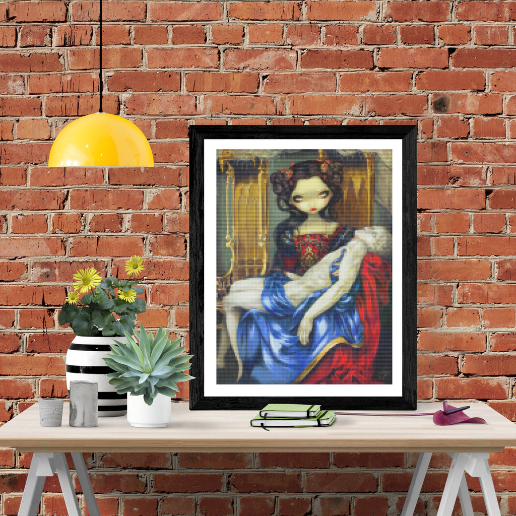 Escape into a world of vibrant colors and creative tranquility with the ‘I Vampiri Pieta’ Diamond Painting Kit. This exclusive full-drill design by artist Jasmine Becket-Griffith is available only at Paint With Diamonds. Let your mind unwind as you piece together shimmering diamonds to create a beautiful masterpiece.