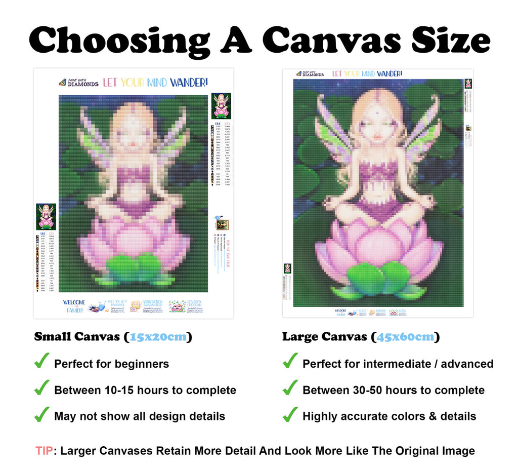Escape into a world of vibrant colors and creative tranquility with the ‘Lotus Fairy’ Diamond Painting Kit. This exclusive full-drill design by artist Jasmine Becket-Griffith is available only at Paint With Diamonds. Let your mind unwind as you piece together shimmering diamonds to create a beautiful masterpiece.