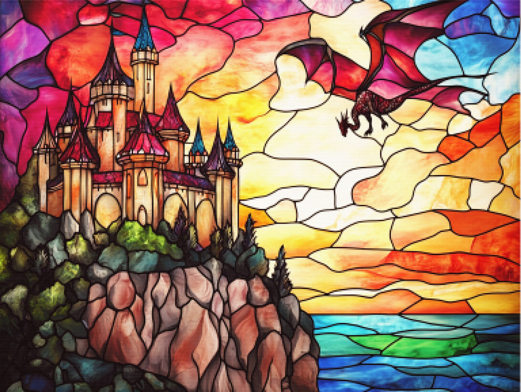 Escape into a world of vibrant colors and creative tranquility with the ‘Majestic Castle Perched On A Cliff’ Diamond Painting Kit. This exclusive full-drill design by artist Caleb Smith is available only at Paint With Diamonds. Let your mind unwind as you piece together shimmering diamonds to create a beautiful masterpiece.